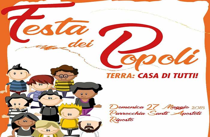 L‘ufficio pastorale Migrantes in collaborazione con gli uffici pastorali diocesani della Caritas , delle Missioni e per l’Ecumenismo ed il Dialogo Interreligioso organizzano la Festa dei Popoli – Terra casa di tutti che si svolgerà domenica 27 maggio 2108 alle ore 17.00 nei locali della parrocchia Santi Apostoli, Riposto.Referente dell’organizzazione: Don Lucio Cannavò tel. 3405515981