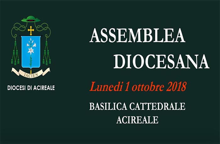 Lunedì 1 ottobre 2018 nella Basilica Cattedrale in Acireale si terrà l’Assemblea diocesana, durante la quale celebreremo l’Eucaristia e renderemo grazie al Signore per i sette anni di servizio episcopale svolti dal nostro Vescovo S. E. R. Mons. Antonino Raspanti.