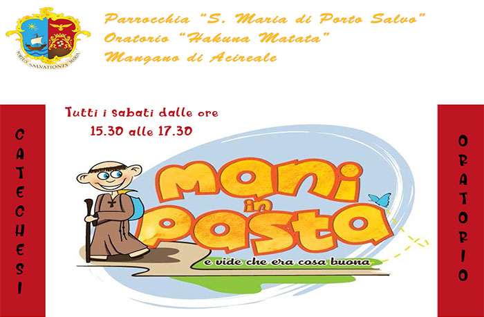 L’oratorio Hakuna Matata della parrocchia S.Maria di Porto Salvo in Mangano informa che a partire da sabato 27 ottobre 2018 avrà inizio l’Oratorio Invernale “Mani in pasta“.
