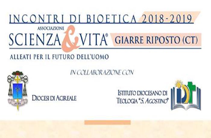 Sei appuntamenti con cadenza mensile, caratterizzano il calendario di incontri di Bioetica 2018/19, organizzati dall’associazione “Scienza & vita”, organizzati in collaborazione con la Diocesi di Acireale e con l’Istituto diocesano di teologia “sant’Agostino” di Acireale.