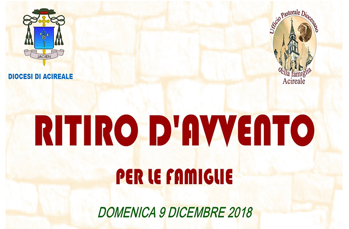 Domenica 9 dicembre 2018, a partire dalle ore 9.30 nella chiesa Sacra Famiglia in Guardia (Fraz. di Acireale), via Nazionale (quartiere “Tonno” , nei pressi della locale stazione ferroviaria della linea Messina – Siracusa) avrà luogo il ritiro diocesano d’Avvento per le famiglie dal tema: “Per fare un buon ragù, dinamiche familiari nei diversi cicli della vita”
