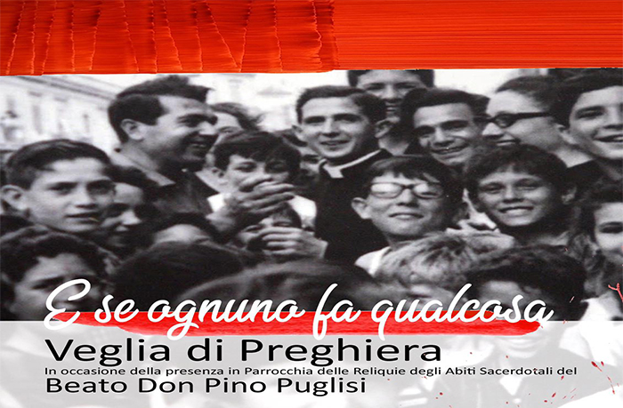 La comunità parrocchiale di Piedimonte Etneo, in occasione della presenza in parrocchia delle reliquie degli Abiti sacerdotali del Beato don Pino Puglisi, giovedì 17 gennaio 2019 alle ore 20, organizza una Veglia di Preghiera, dal tema “E se ognuno fa qualcosa”.