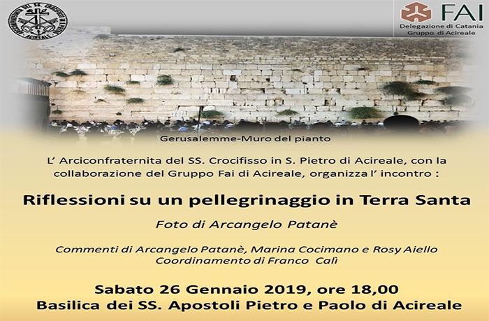 L’ Arciconfraternita del SS. Crocifisso in S.Pietro di Acireale, con la collaborazione del Gruppo FAI di Acireale, organizza l’incontro: