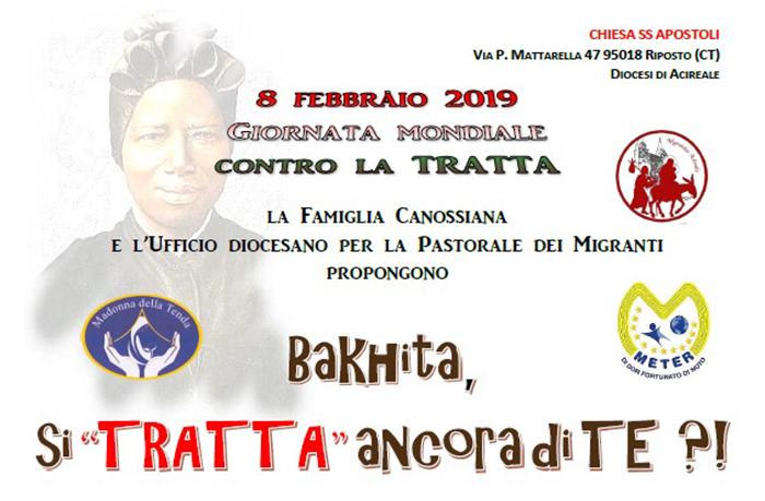 Venerdì 8 febbraio 2019, Giornata Mondiale contro la Tratta, la Famiglia Canossiana e l’Ufficio diocesano per la Pastorale dei Migranti propongono “Bakhita, si Tratta ancora di te?!”