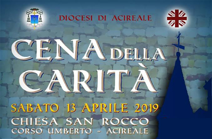 La Caritas della Diocesi di Acireale, in prossimità delle prossime festività pasquali, organizza Sabato 13 aprile 2019 nella chiesa San Rocco in Acireale, la Cena della Carità.
