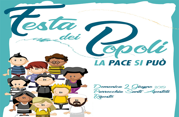 L‘ufficio pastorale Migrantes in collaborazione con gli uffici pastorali diocesani della Caritas , delle Missioni e per l’Ecumenismo ed il Dialogo Interreligioso organizza la Festa dei Popoli – la Pace si può che si svolgerà domenica 2 giugno 2109 a partire dalle ore 17.00 nei locali della parrocchia Santi Apostoli in Riposto.