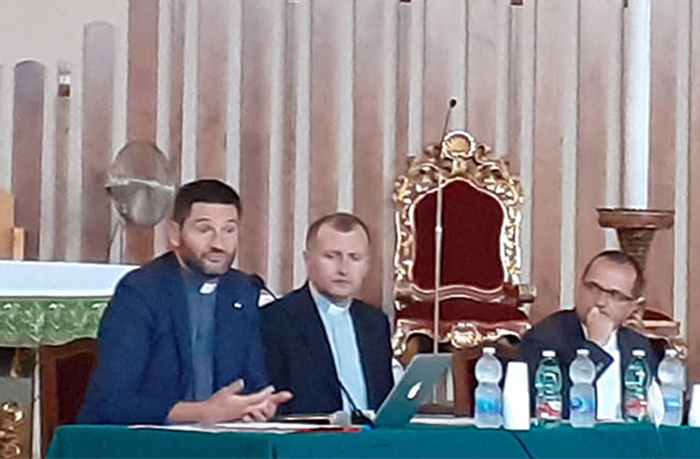 Mercoledì 11 settembre 2019, secondo giorno di convegno catechistico diocesano sul tema “La comunità grembo che genera alla fede“, alla presenza del vicario generale della diocesi mons. Giovanni Mammino e del direttore don Carmelo Sciuto, è intervenuto il relatore don Michele Roselli, direttore dell’ufficio catechistico regionale del Piemonte e Valle d’Aosta e dell’Ufficio Catechistico di Torinorelazionando sulla capacità che i catechisti hanno oggi di creare sinergia con la comunità.