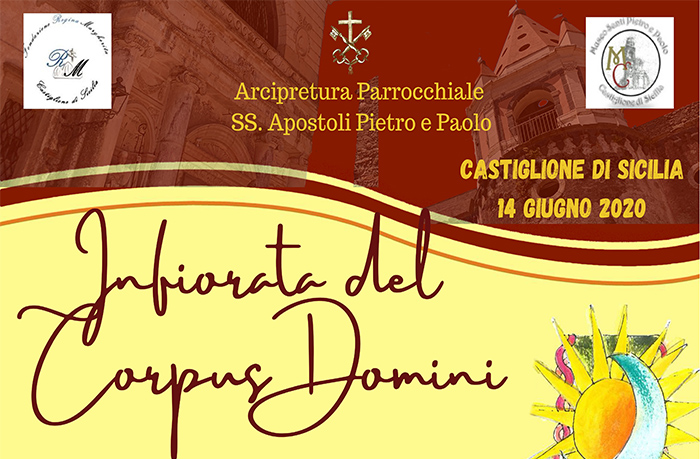 A seguito dell’emergenza sanitaria del Covid-19, quest’anno non sarà possibile svolgere la tradizionale Processione del Corpus Domini. I volontari dell’Arcipretura Parrocchiale Santi Apostoli Pietro e Paolo, l’Associazione Museo San Pietro e Paolo e la Fondazione Regina Margherita, sotto la guida del Parroco don Orazio Greco, appronteranno un’ “Infiorata” in onore del Corpus Domini, nella Chiesa Madre S. Pietro in Castiglione di Sicilia.