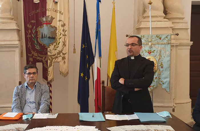 Il primo cittadino della città Nello Oliveri, ringraziando coloro che si sono prodigati nell’organizzazione della festa, ha sottolineato come l’evento religioso rappresenti un momento di unione per la cittadinanza, nonostante quest’anno l’ingresso nei giorni della festa sarà contingentato, nel rispetto delle norme del ministero dell’Interno e della CEI. Dopo gli interventi del Presidente del Consiglio, che ha elogiato le bellezze della città catenota, e del rappresentate, il quale ha ringraziato i volontari della comunità, il sindaco ha concluso informando i presenti della prossima realizzazione di un museo, anche multimediale, “Il Principe Riggio racconta il fascino delle terre di Aci”, che vedrà la Cappella del suddetto Palazzo, sede di conferenze.