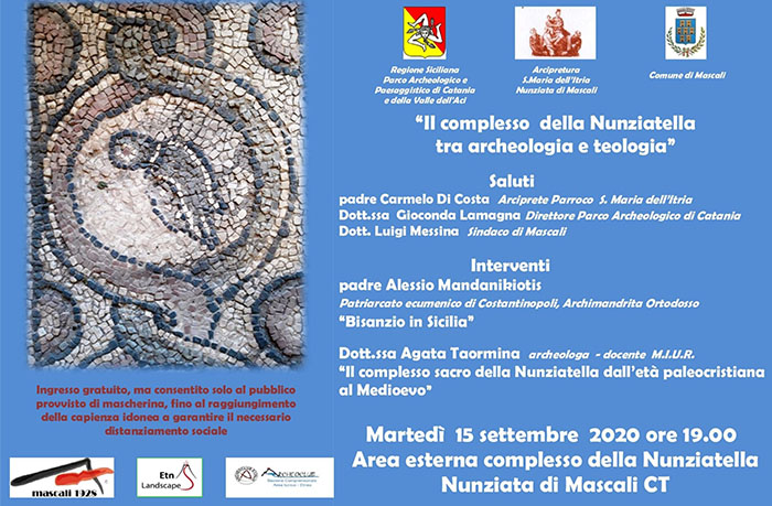 Martedì 15 settembre alle ore 19.00, nell’Area esterna complesso della Nunziatella, in Nunziata di Mascali, si terrà l’incontro dal tema “Il complesso della Nunziatella tra archeologia e teologia”