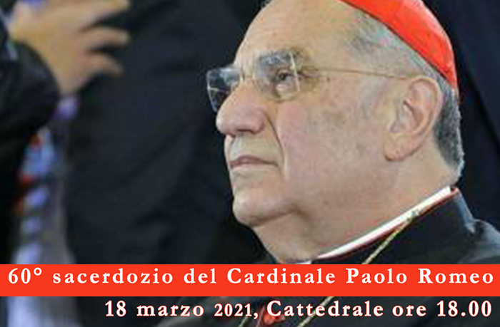 La comunità diocesana è invitata a partecipare alla Celebrazione Eucaristica presieduta dal Cardinale Paolo Romeo, figlio eletto della nostra Chiesa diocesana e arcivescovo emerito di Palermo, nel lieto evento del suo sessantesimo anniversario di sacerdozio, che avrà luogo nella Basilica Cattedrale di Acireale,  giovedì 18 marzo 2021 alle ore 18.00, vigilia dei solenni festeggiamenti in onore di San Giuseppe.