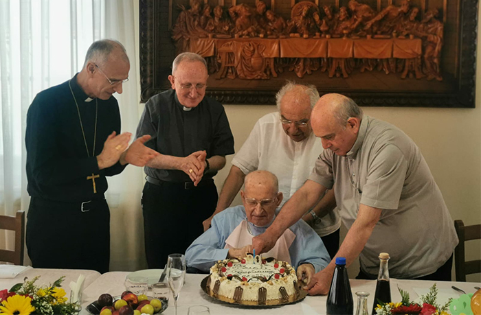 Il pranzo di ringraziamento è stato svolto presso l’OASI di Aci Sant’Antonio (Opera Assistenza Sacerdotale Interdiocesana – Maria Ss. Assunta) sabato 10 luglio alla presenza di mons. Antonino Raspanti, vescovo di Acireale, del Cardinale Paolo Romeo, arcivescovo emerito dell’arcidiocesi di Palermo, di mons. Salvatore Gristina, arcivescovo della arcidiocesi di Catania, di mons. Giuseppe Sciacca, segretario del Supremo tribunale della Segnatura apostolica e di mons. Giovanni Mammino, vicario generale della diocesi di Acireale.