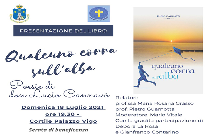 Domenica 18 Luglio alle ore 20.00, nel cortile del palazzo Vigo di Torre Archirafi, sarà presentato il libro  dell’autore don Lucio Cannavò, “Qualcuno corra sull’alba”, che raccoglie poesie e scatti fotografici.