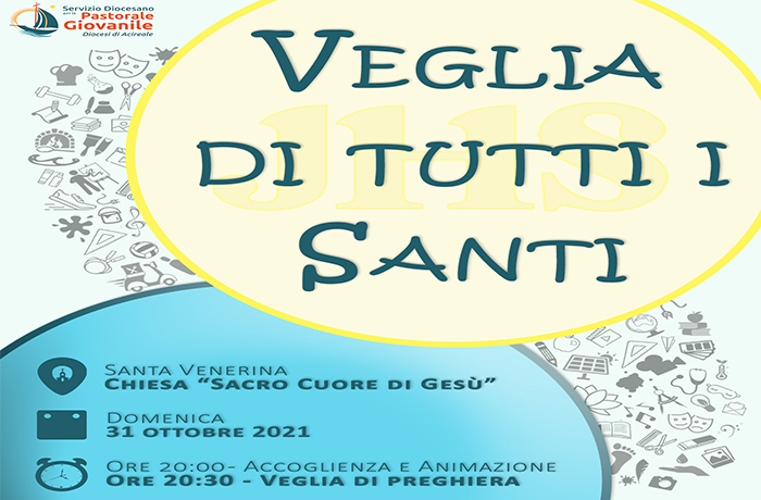 Domenica 31 ottobre 2021, alle ore 20.30 nella chiesa “Sacro Cuore di Gesù” di Santa Venerina, il Servizio Diocesano di Pastorale Giovanile, guidato dal direttore don Orazio Sciacca, organizza la tradizionale Veglia di preghiera in occasione della vigilia della Solennità di Tutti i Santi. Presiede il vescovo Antonino Raspanti.