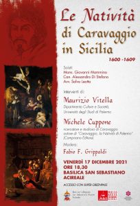 Venerdì 17 dicembre, alle ore 18.30, nella Basilica Collegiata di San Sebastiano Martire in Acireale si terrà l’evento “Le Natività di Caravaggio in Sicilia, 1600-1609”, organizzato dal Museo Basilica San Sebastiano e dalla Consulta della Cultura di Acireale. I relatori saranno Maurizio Vitella, docente del Dipartimento Culture e Società dell’Università degli Studi di Palermo e il ricercatore e studioso di Caravaggio Michele Cuppone, autore del saggio “Caravaggio, la Natività di Palermo. Nascita e scomparsa di un capolavoro” (Campisano Editore). Modera Fabio F. Grippaldi, saluti iniziali di mons. Giovanni Mammino, don Alessandro Di Stefano e Salvo Leotta.