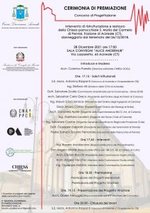 RICOSTRUZIONE CHIESA DI PENNISI: CERIMONIA DI PREMIAZIONE DEL PROGETTO