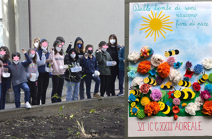 Acireale, GLI ALUNNI DLL’I.C. GIOVANNI XXIII LANCIANO BOMBE DI SEMI. SOLIDARIETA’ AL POPOLO UCRAINO