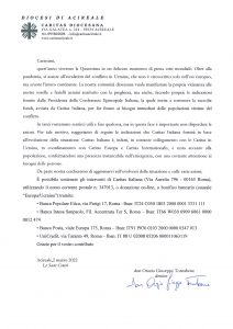 “La Caritas diocesana – continua don Tornabene – desidera sensibilizzare i fedeli a fronteggiare la situazione drammatica in Ucraina attraverso un’offerta . Le comunità parrocchiali per la Quaresima hanno già predisposto un cammino di carità per il proprio territorio, ma quest’anno ci viene richiesto un aiuto ulteriore per essere prossimi alle sorelle e fratelli ucraini”.