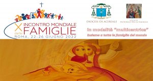La Pastorale Familiare diocesana, guidata da don Antonio Pennisi e dai coniugi Giacomo Stulle e Mariella Carcione, in previsione del DECIMO INCONTRO MONDIALE DELLE FAMIGLIE che si terrà a Roma dal 22 al 26 giugno 2022 in modalità multicentrica con tutte le diocesi del mondo, intende proseguire il cammino di riscoperta del Ministero Coniugale.