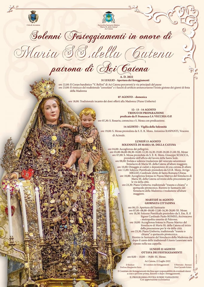 Un’iniziativa inedita, in occasione dei festeggiamenti di Maria SS. della Catena, realizzata dal Comune di Aci Catena, Parrocchia-Santuario Maria SS. della Catena, Commissione Festeggiamenti e dalle Associazioni in Rete quali Associazione Guardastelle, Industrie culturali ed Il Racconto .