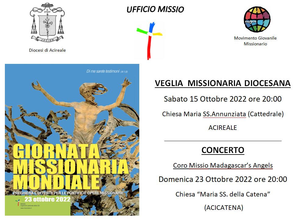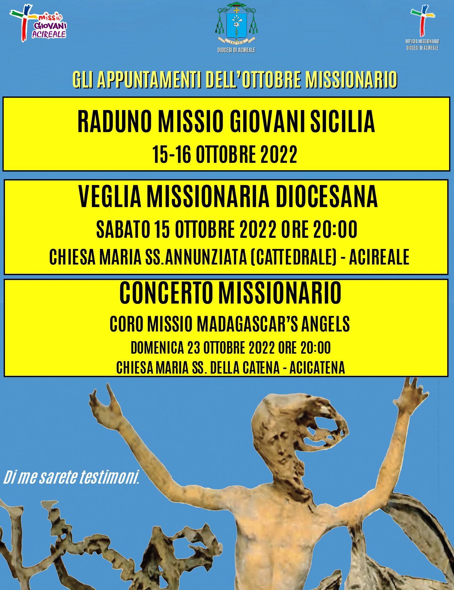 • Sabato 15 ottobre – ore 20, nella Basilica Cattedrale di Acireale si terrà la Veglia Missionaria Diocesana