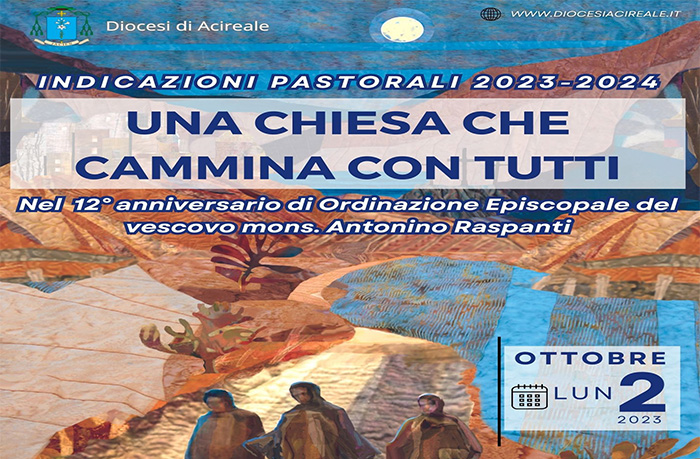 Lunedì 2 ottobre, a partire dalle ore 17 avrà luogo, nella Basilica Cattedrale di Acireale, l’ ASSEMBLEA SINODALE DIOCESANA. Nello stesso giorno la comunità diocesana ringrazierà il Signore anche per il 12° ANNIVERSARIO DI ORDINAZIONE EPISCOPALE del vescovo mons. ANTONINO RASPANTI, che consegnerà ai presenti le INDICAZIONI per il nuovo ANNO PASTORALE. In realtà il vescovo ricorda il suo anniversario il giorno 1° ottobre, quando nel 2011 giunse ad Acireale, ed essendo quest’anno di domenica, non si sarebbe potuto garantire la presenza dei sacerdoti e laici in quanto impegnati nelle comunità parrocchiali.