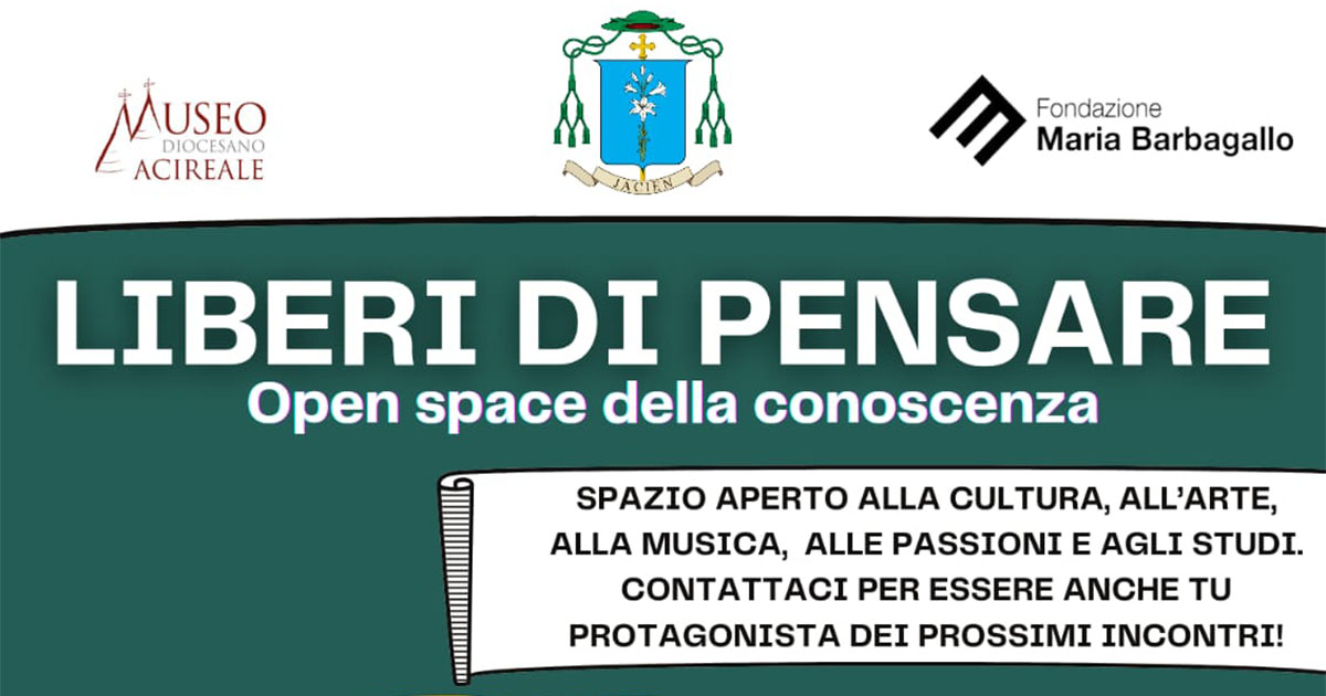 Liberi di pensare – Open Space della conoscenza è l’appuntamento con la cultura che la diocesi di Acireale offre a quanti sono interessati ad ampliare le proprie prospettive di crescita umana e formativa.