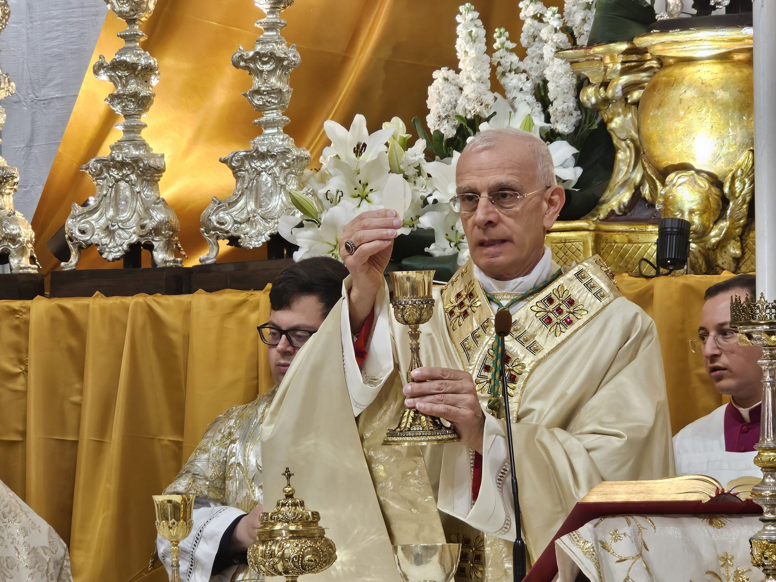 In questa celebrazione sono state annunciate alcune ricorrenze, in particolare il 50° anniversario di sacerdozio di Don Salvatore Scalia ed il 40° di episcopato del Cardinale Paolo Romeo, presente alla celebrazione. Hanno concelebrato alla Santa Eucaristia anche i vescovi mons. Giuseppe Sciacca, presidente dell’Ufficio del lavoro della Sede Apostolica, e mons. Paolo Urso, vescovo emerito della diocesi di Ragusa, entrambi figli della diocesi acese.