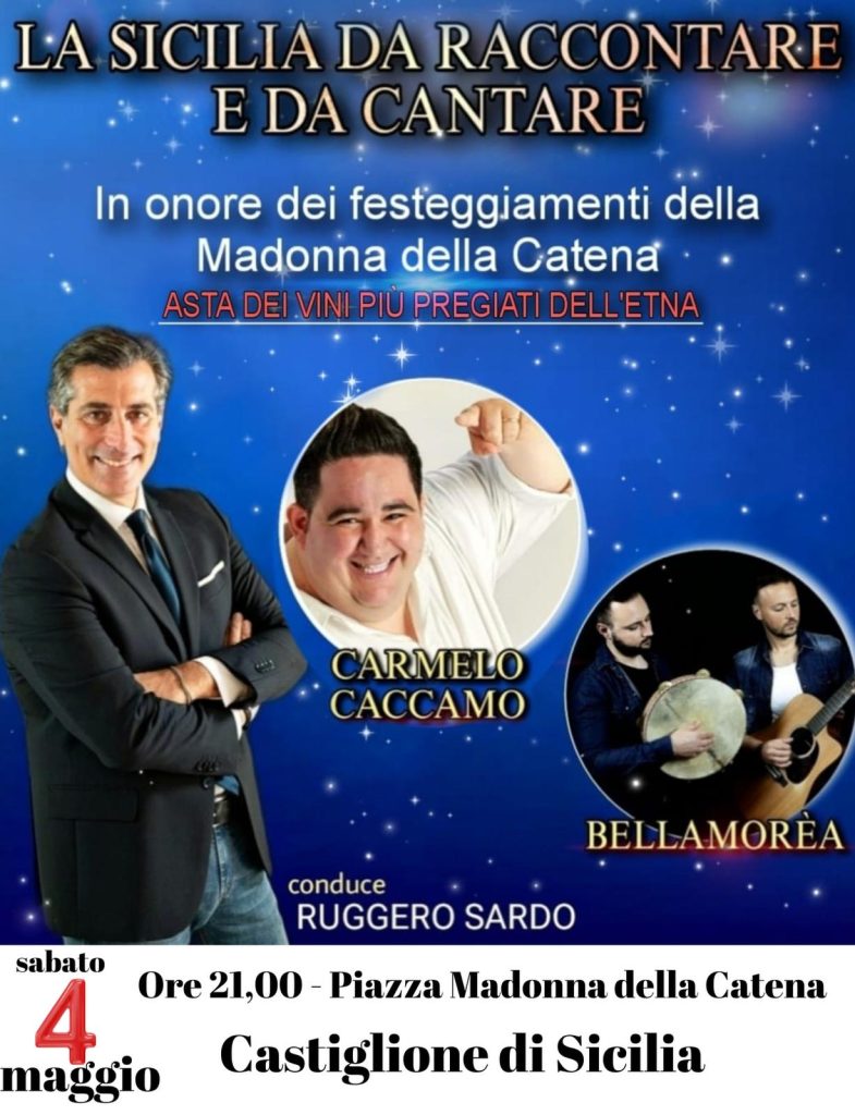 L’appuntamento è per Sabato 4 Maggio dalle ore 21:00 in Piazza Madonna della Catena, dove una serata di musica, cabaret e vino farà da cornice all’asta. Ruggero Sardo sarà il presentatore dell’evento, mentre ospiti d’eccezione saranno Carmelo Caccamo con la celebre “Signora Santina” e la band siciliana “Bellamorea”.