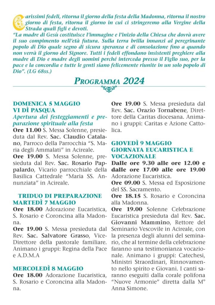 Don Rosario Raciti: “Le celebrazioni mariane sono un’opportunità per rinnovare il nostro impegno a costruire un mondo di pace, giustizia e solidarietà”