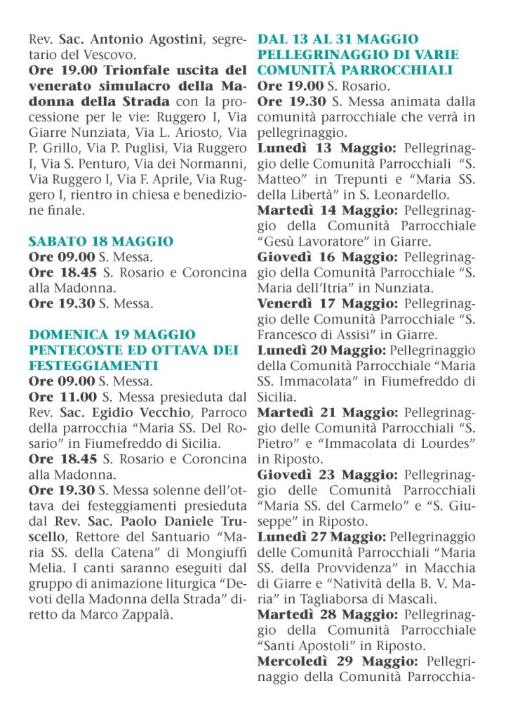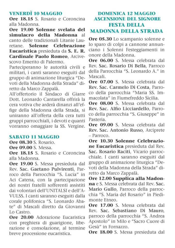 - DON ROSARIO RACITI, Vicario Parrocchiale delle comunità “S. Maria della Strada” e “Sant’lsidoro Agricola” di Giarre