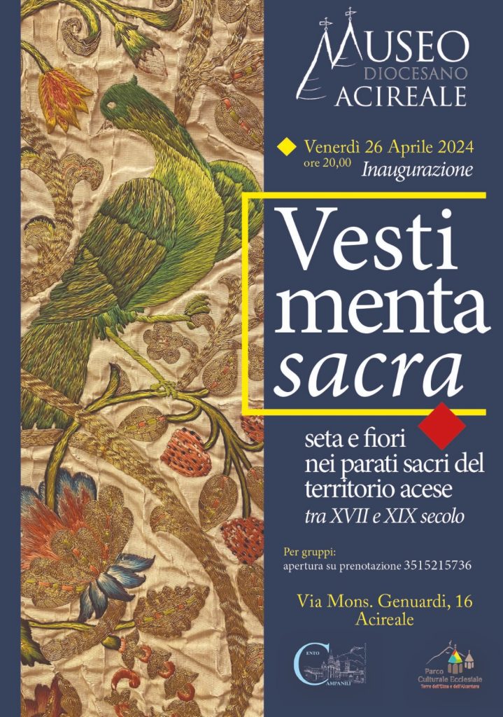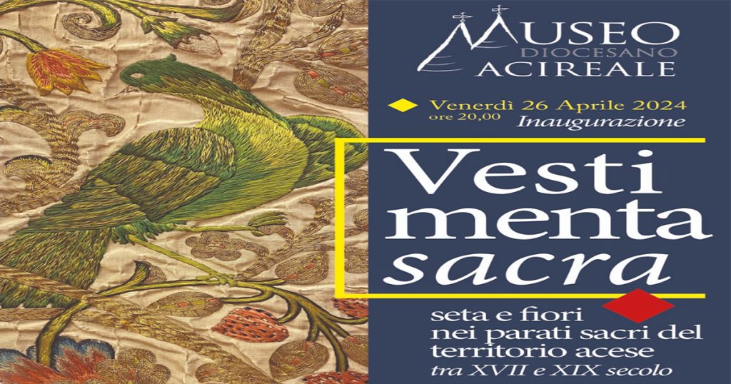 Il Museo Diocesano di Acireale è lieto di annunciare l’inaugurazione della mostra temporanea “Vestimenta Sacra: seta e fiori nei parati sacri del territorio acese tra il 18esimo ed il 19esimo secolo”.