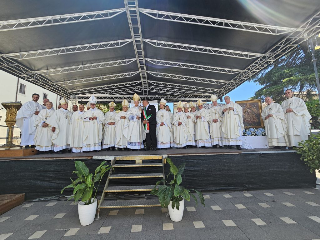 La Santa Messa presieduta dal vescovo Raspanti, Presidente della CESi e vescovo della Diocesi di Acireale, e concelebrata dal Cardinale Romeo, da Mons. Castellucci e dai vescovi della Sicilia, ha avuto luogo nella Piazza antistante al Santuario.