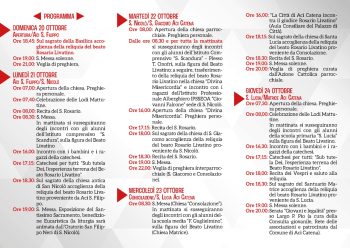 MERCOLEDI 23 OTTOBRE – Consolazione/S. Lucia – ore 16,00: “La Città di Aci Catena incontra il giudice Rosario Livatino” presso L’Aula Consiliare del Palazzo di Città. Ore 18,15: Accoglienza presso il sagrato della Chiesa di Santa Lucia.
