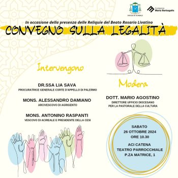 SABATO 26 OTTOBRE – Matrice Aci Catena – ore 10,30 – “Convegno sulla Legalità” nel Teatro parrocchiale