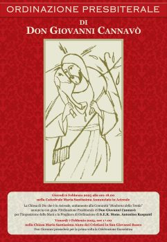 La Chiesa che è in Acireale, grata al Signore per il dono delle vocazioni, annuncia con gioia l’ordinazione presbiterale del diacono don Giovanni Cannavò, della comunità Madonna della Tenda, per l’imposizione delle mani e la preghiera di ordinazione del vescovo mons. Antonino Raspanti.