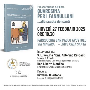 La Diocesi di Acireale, anche quest’anno, si prepara a vivere il tempo di Quaresima con il testo di riflessione “Quaresima per i fannulloni…alla scuola dei Santi” di P. Max Huot de Longchamp, giunto alla 20esima edizione.