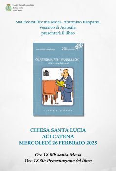 Ad Acireale sarà presentato, nella Basilica Cattedrale, giovedì 20 febbraio alle ore 19, dopo la Santa Messa delle ore 18 celebrata in occasione del Giubileo dei Club Service