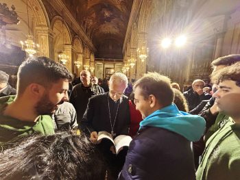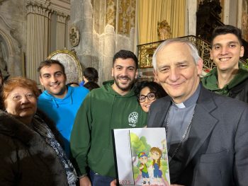 Per l’occasione, i giovani consegnano il sussidio estivo al Cardinale Zuppi ed al Vescovo Raspanti
