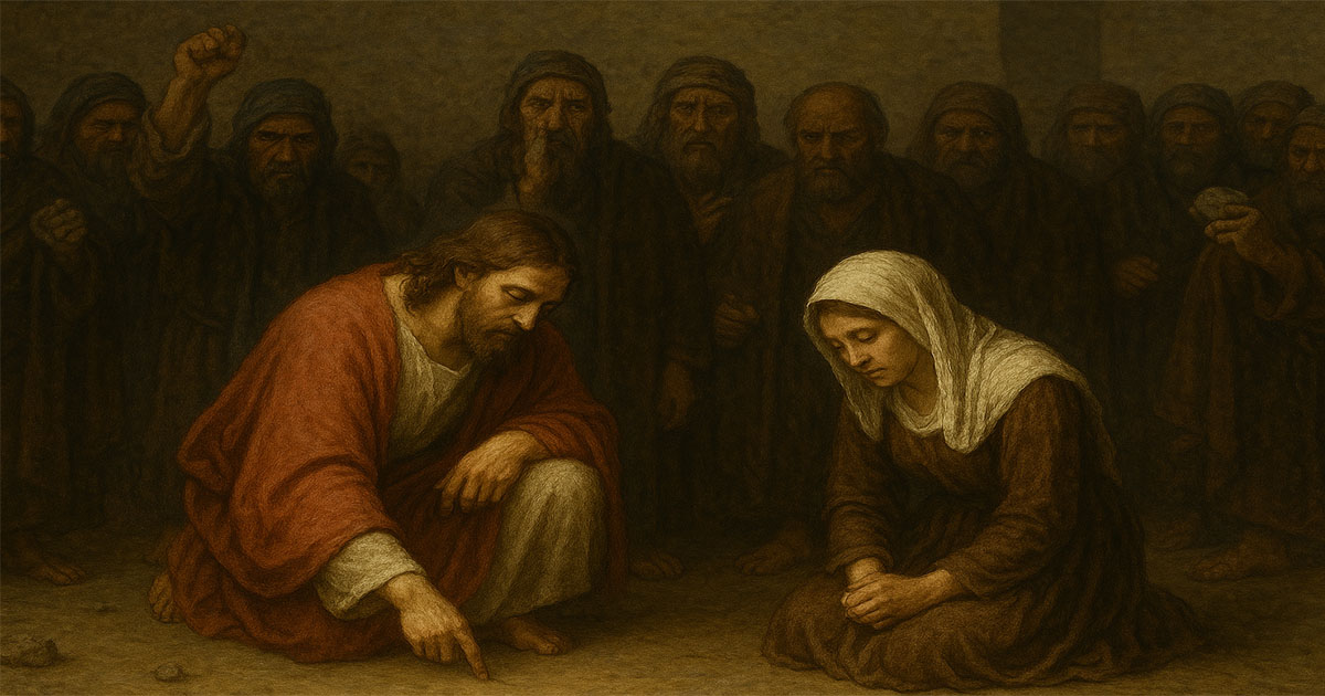 “Maestro, che ne dici?” chiedono a Gesù. È una trappola. Ma Gesù non risponde subito. Si china, scrive per terra, tace. Poi dice: “Chi di voi è senza peccato, scagli per primo la pietra.”