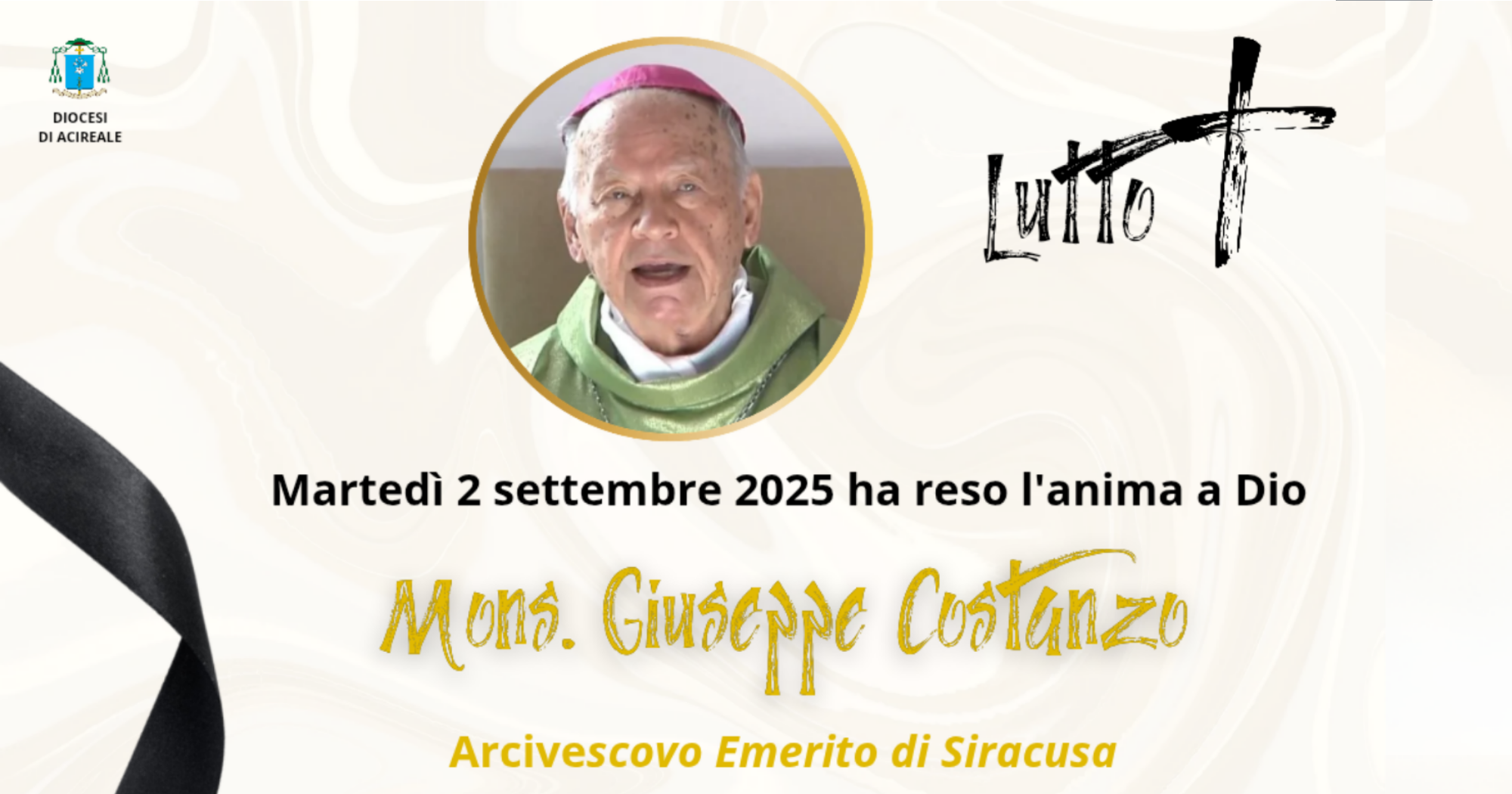 La Diocesi di Acireale, con profonda commozione, annuncia che, dopo una rovinosa caduta, è venuto a mancare all’età di 92 anni Mons. Giuseppe Costanzo, arcivescovo emerito di Siracusa.