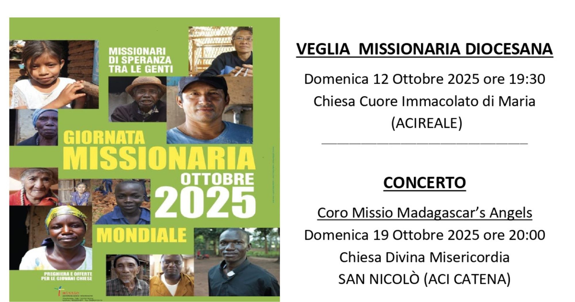 “Con questi momenti di preghiera e di comunione – dichiara don Orazio Sciacca, direttore Missio Acireale – la nostra Chiesa locale desidera rinnovare la propria vocazione missionaria e incoraggiare tutti i fedeli a diventare portatori del Vangelo della Speranza tra le genti”.