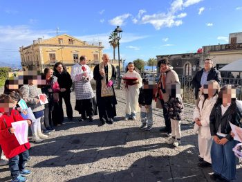 Ad accogliere il vescovo, accompagnato da don Arturo Grasso, responsabile delle Comunicazioni Sociali della Diocesi di Acireale, e da don Gabriele Aiola, parroco della chiesa Madre di S. Alfio, assieme agli alunni e ai loro insegnanti, la dirigente scolastica Rossana Maletta.