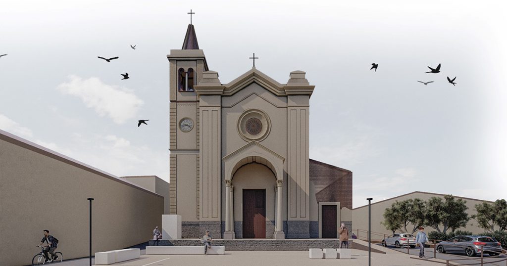 Gli interventi hanno inoltre previsto il consolidamento conservativo del catino absidale, il restauro pittorico delle superfici affrescate dell’abside, la realizzazione di nuove strutture in acciaio per la sacrestia e il salone parrocchiale, una nuova copertura con capriate in acciaio, la ricostruzione della volta dell’aula, il consolidamento del campanile con nuova guglia, il restauro degli altari, la nuova pavimentazione e l’installazione di impianti tecnologici di ultima generazione.