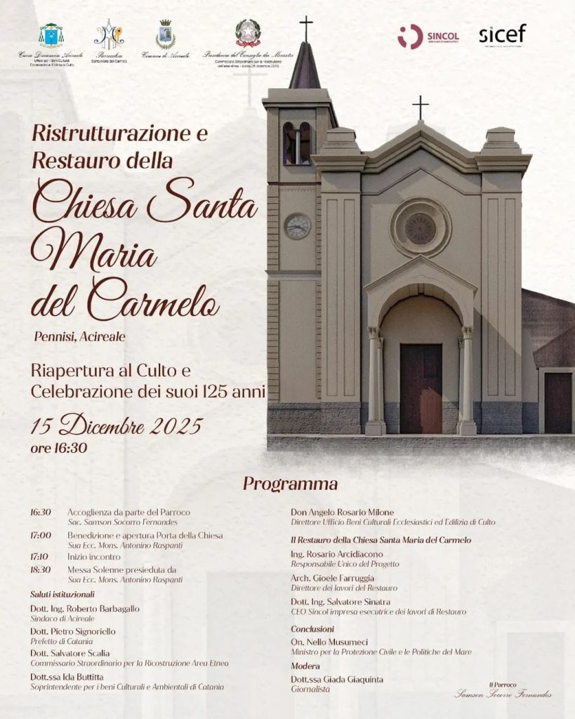La riapertura della chiesa Santa Maria del Carmelo rappresenta un segno di rinascita per l’intera comunità di Pennisi, che si vede restituire un luogo profondamente radicato nella memoria collettiva.