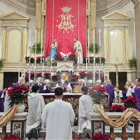 Durante la sua omelia il vescovo ha ricordato che la chiesa è «segno della Città Celeste. È immagine del Paradiso. Qui Dio incontra ciascuno di noi. Qui cielo e terra si toccano. Noi siamo corpo, memoria, storia, architettura e geografia delle nostre sensibilità. Abbiamo bisogno di luoghi che ci accolgano. Questa è la casa della nostra fede, della nostra città, del nostro popolo. Qui tutto viene offerto a Dio. Qui, da semi dispersi, diventiamo una sola voce di figli che rendono grazie. Per questo amiamo la bellezza della Casa del Signore e custodirla è già prepararci alla Casa che ci attende. Avendone cura, come Maria, tocchiamo la carne di Cristo con la tenerezza di chi ama».