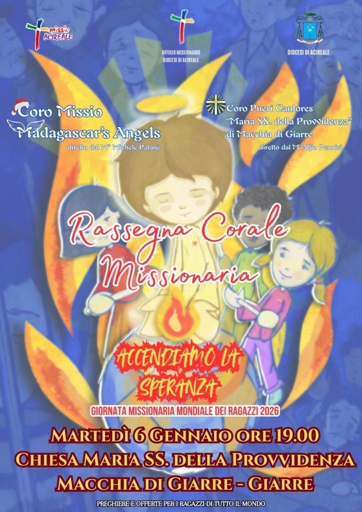 A tal fine, l’Equipe dell’Ufficio Missionario della Diocesi di Acireale, ha organizzato una Rassegna Corale svoltasi proprio nel giorno di Epifania (Giornata Mondiale dei Missio Ragazzi) presso la Parrocchia Maria SS. della Provvidenza in Macchia di Giarre.