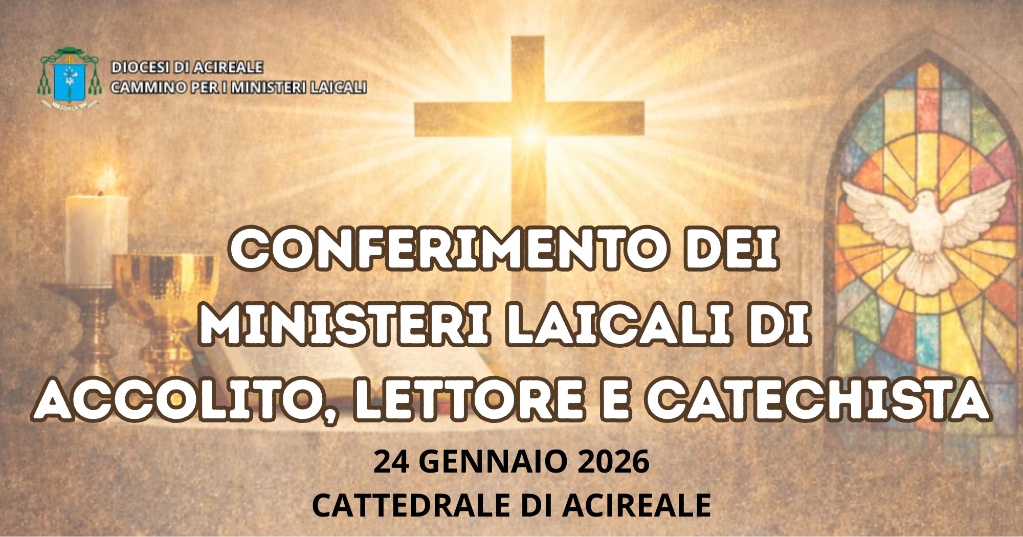 Sabato 24 gennaio 2026, alle ore 18.30, nella Basilica Cattedrale “Maria Santissima Annunziata”, il vescovo di Acireale, mons. Antonino Raspanti, conferirà i ministeri istituiti di accolito, lettore e catechista ai 17 candidati che hanno seguito il percorso propedeutico guidato da don Raffaele Stagnitta, vicedirettore dell’Ufficio Liturgico diocesano.