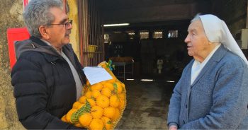 ACI BONACCORSI – Un gesto semplice ma denso di significato quello compiuto dal signor Salvatore Cristaldi, che ha donato una consistente quantità di mandarini, circa ottanta kg, alle Suore dell’Istituto Canossiano di Aci Bonaccorsi, provenienti dal suo terreno di Maugeri, frazione di Valverde.