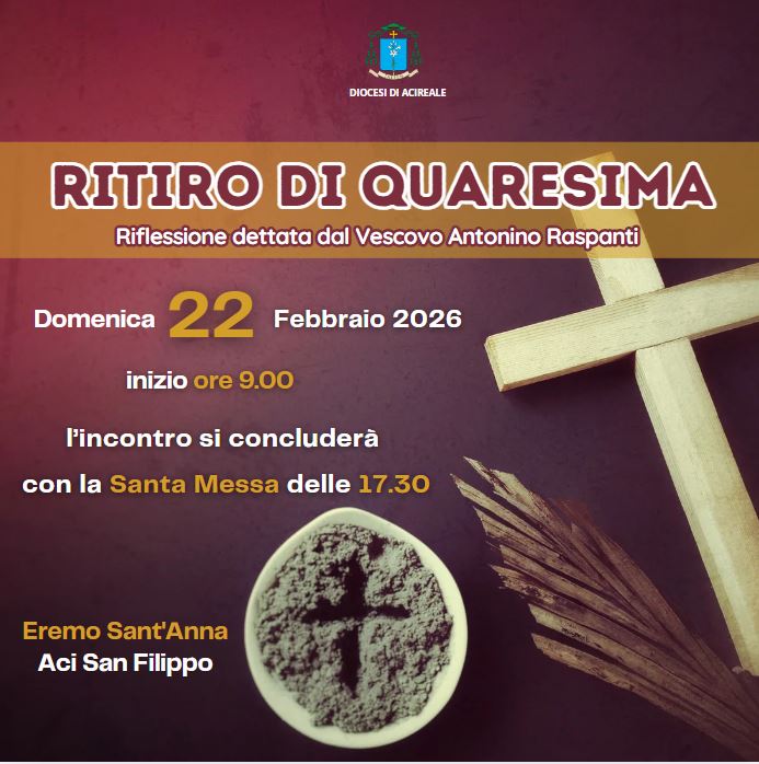 Domenica 22 febbraio 2026 la Diocesi di Acireale invita i fedeli a vivere un intenso momento di spiritualità in occasione del Ritiro di Quaresima 2026, un appuntamento pensato per preparare il cuore al tempo forte che conduce alla Pasqua.
